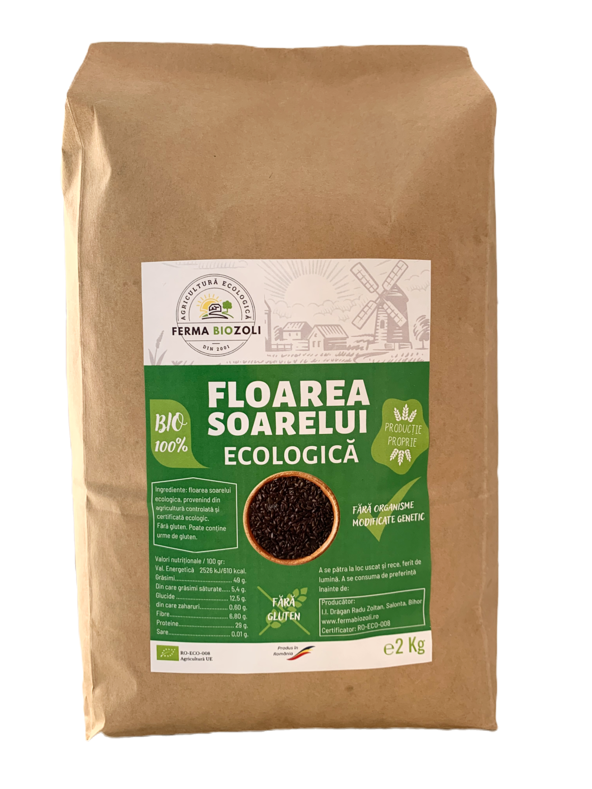 Floarea soarelui Ecologică, Semințe nedecorticate, 2 kg