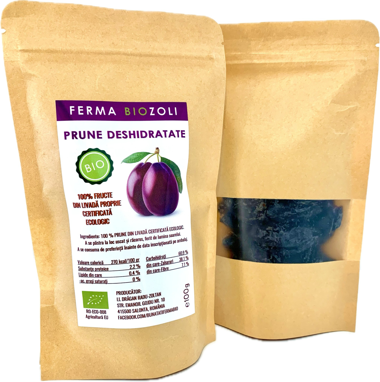 Prune Deshidratate Ecologice 100 gr, din prune din livadă certificată ecologic, produs organic, certificat ecologic, producție proprie.